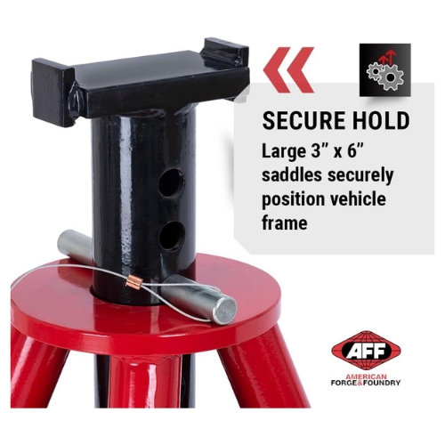 - The AFF 3310B is a pair of heavy-duty pin-style jack stands made of steel, rated for 10 tons. Designed for trucks, trailers, and other large equipment, it offers secure support with multiple locking pin positions and an extra-large saddle for frame contact.