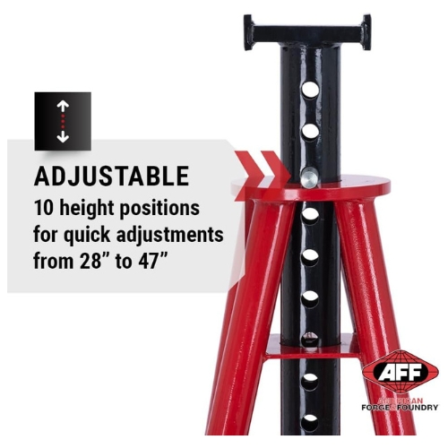 AFF 3310B 10-Ton Steel Pin-Style Jack Stand Set, Heavy-Duty Base, 28-to-47-inch Height Range