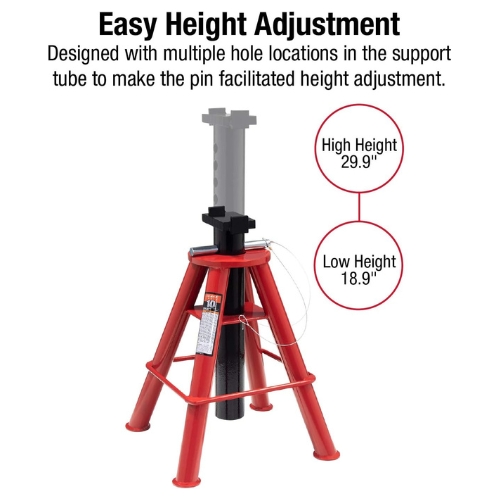Sunex 1310 10-Ton Medium Height Pin Type Jack Stands, Pair, Red