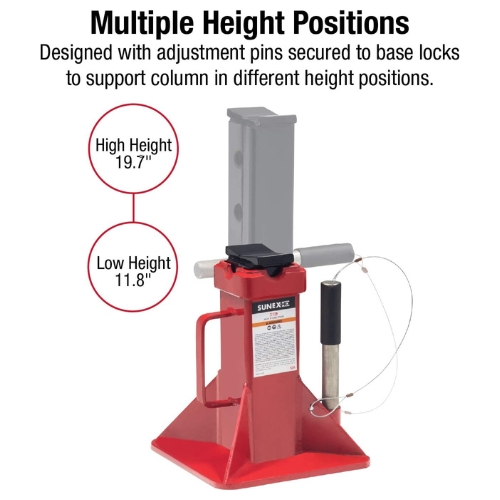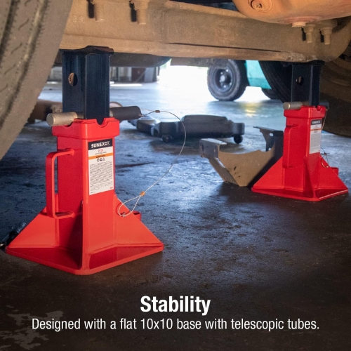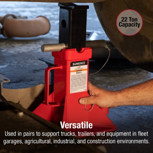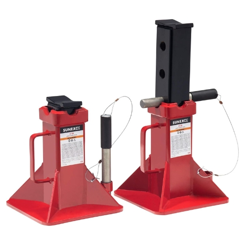 - The Sunex 1522A jack stand pair delivers heavy-duty support for trucks, trailers, and large vehicles. With a durable steel build, pin-adjustable height, and V-shaped saddle design, they provide reliable performance in demanding environments.