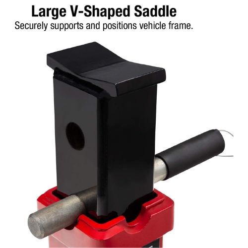 - Large V-shaped saddle with locating lugs to securely cradle the vehicle frame or axle