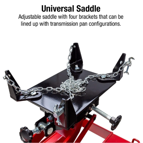 - Universal adjustable saddle with four tilt brackets for alignment with various transmission pan configurations