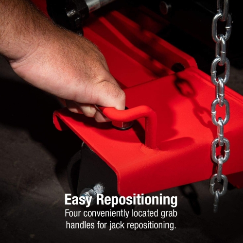 A: The jack’s height ranges from 8.7 inch at its lowest to 36.62 inch at maximum extension.