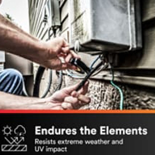 • Flame retardant, abrasion and weather resistant construction supports indoor and outdoor use above or below grade.