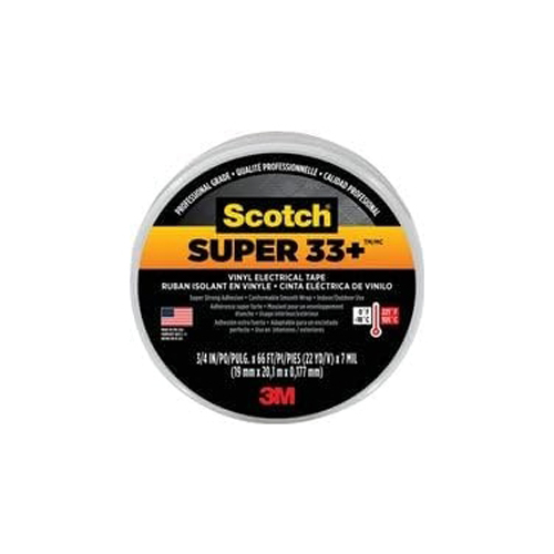 • 3M 06132 Scotch Super 33+ Vinyl Electrical Tape is a premium 7 mil, professional grade PVC insulating tape. Rated for primary insulation up to 600 V and continuous service to 105 C, it provides moisture tight electrical and mechanical protection with strong adhesion and excellent conformability in cold and hot conditions.