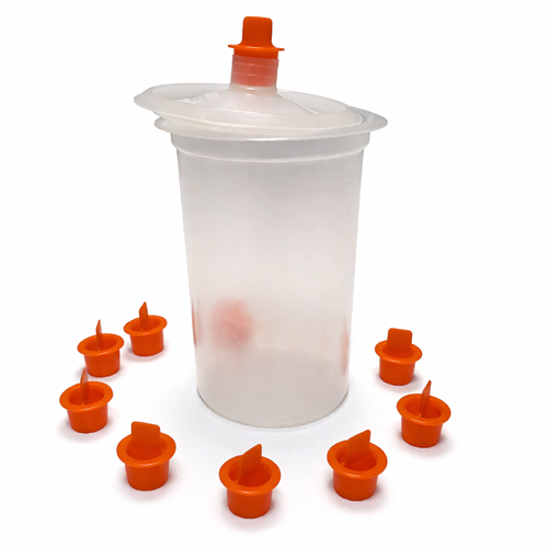- Disposable cup and lid format reduces cleaning time compared with traditional reusable spray gun cups.