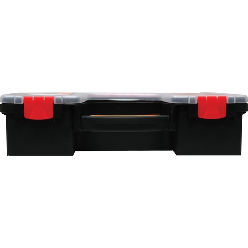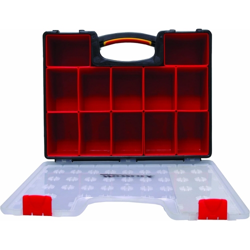 - 12 removable bins provide customizable compartment organization for small parts, fasteners, and accessories.
