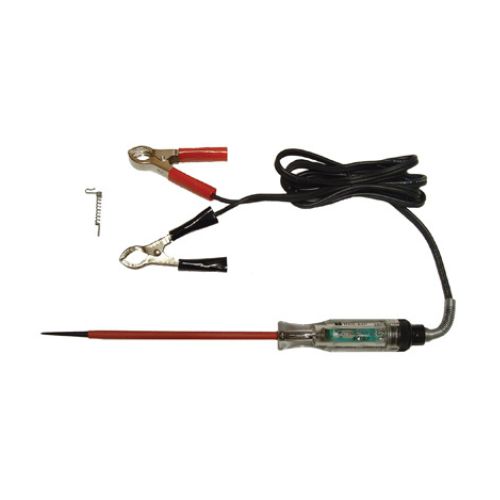 • The Tool Aid 28000 Heavy Duty Automotive Logic Probe is a versatile diagnostic tool for testing high and low voltages in 6, 12, and 24-volt vehicle systems. Featuring dual color LEDs for easy identification of power and ground, this probe comes with 6 feet of heavy-duty cables and large battery clips for convenient connection. The extra-long 7-inch insulated probe and included probe adapter allow access to tight spaces and protect connectors, making it an essential tool for diagnosing electrical issues in various vehicle systems, including engine and body computers.