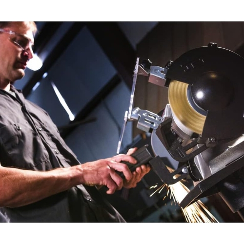 The Jet 577128 JBG-8W Bench Grinder provides reliable grinding and wire brushing with its cast iron housing, 1 horsepower motor, and dual-wheel design. With its 3,450 RPM speed and rugged build, it is an excellent choice for heavy-duty shop applications.