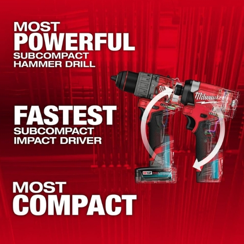 - M12 Fuel 1/2 inch Hammer Drill/Driver is the most powerful subcompact drill in its class and the shortest in length for better access.