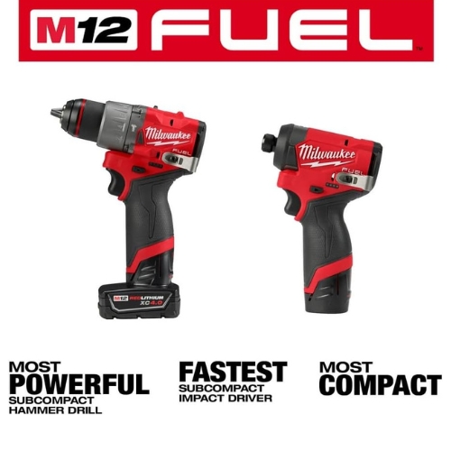 - The Milwaukee 3497-22 M12 Fuel 2-Tool Combo Kit provides powerful subcompact drilling and compact impact driving in one set with its M12 FUEL 1/2 inch Hammer Drill/Driver (3404-20) and M12 Fuel 1/4 inch Hex Impact Driver (3453-20); includes one redlithium XC 4.0 amp-hour battery, one redlithium CP 2.0 amp-hour battery, a charger, and a contractor bag for versatile on-the-go performance.