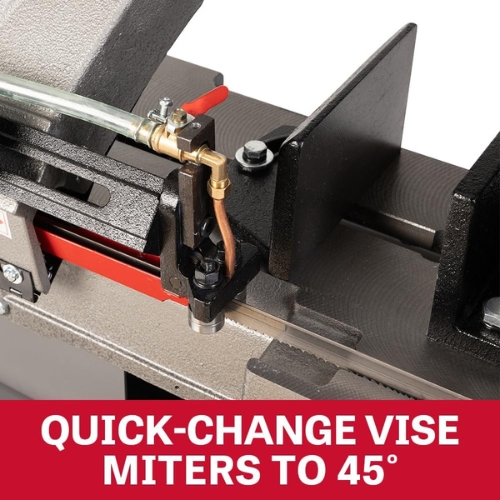 - Swivel vise allows up to 45-degree angled cuts for mitering applications.
