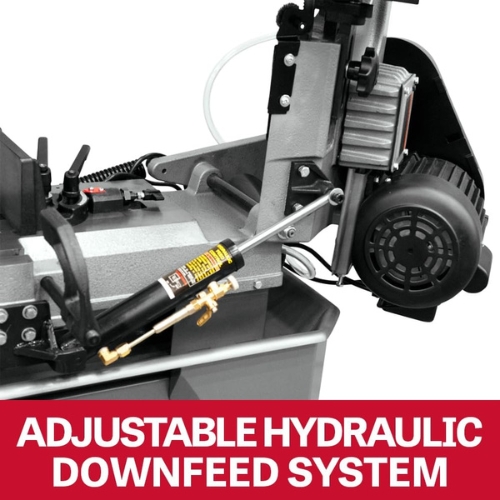 - Hydraulic downfeed control provides consistent and accurate cutting pressure.