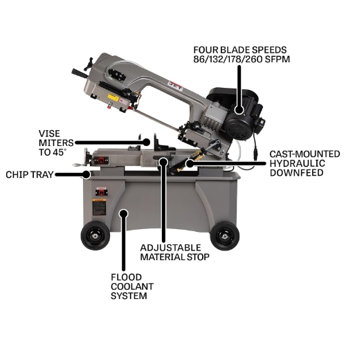 - Four blade speeds (86, 132, 178, and 260 SFPM) for cutting a wide range of materials.