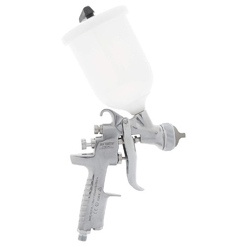 - The Anest Iwata 9230 AirGunsa HV2 is a center-post, gravity feed HVLP spray gun optimized for sealers and materials requiring fine atomization. It features a 1.3 mm fluid tip, ~600 mL cup capacity, polished body, and produces a controlled ~11 inch pattern at ~28 psi.