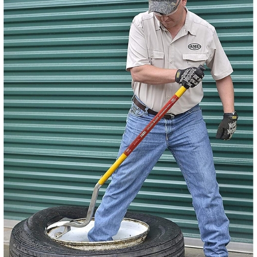 The AME 71050 Golden Buddy Tire Tool is engineered with steel and reinforced nylon components to protect rims and beads, offering an efficient solution for mounting and demounting large truck tires in shop and fleet environments.