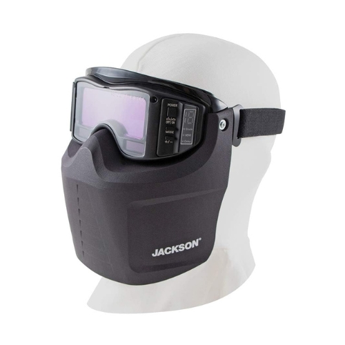 A: The one-piece goggle and wrap-around face shield in tandem with the fire-resistant hood offers complete protection from sparks, spatter, and UV/IR emissions.