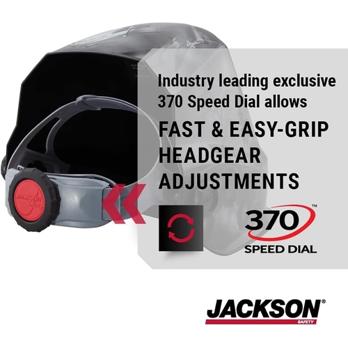 - 370 Speed Dial ratcheting headgear system for comfortable, quick fit adjustment and reduced fatigue with extended use.