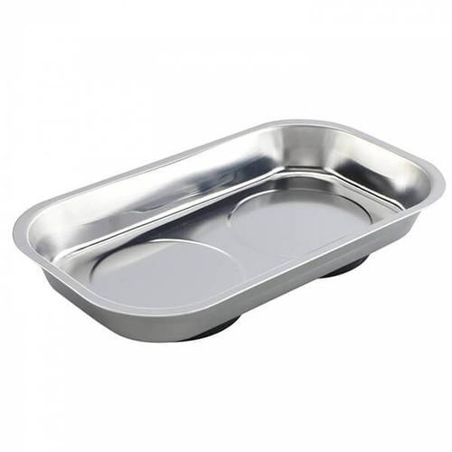 - Bosch Automotive Service Solutions 4490 magnetic parts tray holds small ferrous parts and tools during service. The rectangular stainless steel body and two heavy duty base magnets with non-marring contact pads secure the tray to steel surfaces such as a toolbox, fender, or frame rail to reduce lost fasteners.