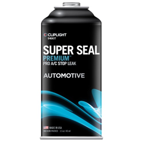 - The Cliplight 946KIT Super Seal Premium Auto A/C Stop Leak Sealant (1.5 oz.) is a fast, professional solution for repairing and preventing leaks in car air conditioning systems. Designed to seal leaks in evaporators, condensers, accumulators, o-rings, gaskets, metal lines, and rubber hoses, this easy-to-use kit installs in minutes with the included hose. Compatible with all mobile A/C refrigerants—including R12, R134a, and R1234yf—this premium sealant restores performance, prevents future leaks, and saves time and costly repairs. Perfect for car owners and mechanics, the 946KIT delivers superior quality and long-lasting results.