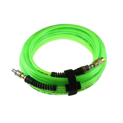 - The Flexeel Max Reinforced Polyurethane Air Hose can also be referred to as 1/4 inch industrial interchange air hose, reinforced polyurethane air hose, air hose with ball swivel coupler, air hose with air safety plug, and high visibility green air hose.