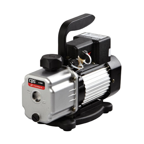 - The VPC4SU Premium Compact series of Pro-Set Vaccum Pumps incorporate the perfect balance of professional-grade performance features in an extremely portable, small-lightweight package. This innovative 4 CFM, single-stage unit is factory tested and certified to achieve an ultimate vacuum rating as low as 100 microns and weighs only 11.0 lb / 5 kg. Big performance in a small package, the VPC4SU provides fast, deep vacuums without weighing you down.
