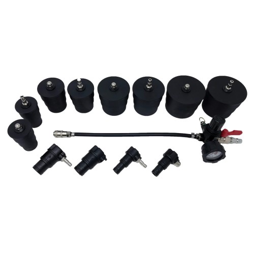 • Special Features: Comes with 6 pairs of stepped adapters to fit most size hoses. Air is applied through one end of the adapter to show the presence of leaks within the system. Kit features a pressure gauge, shut off valve and pressure regulator. The turbo system leakage tester helps locate air leaks in the components by plugging the output side of the turbo and plugging the intake inlet. This setup can also be used on cooling system hoses.