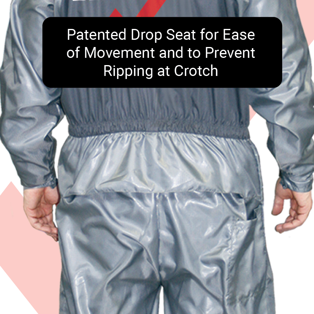 - Patented Drop Seat for Complete Ease of Movement and Prevents Ripping at Crotch