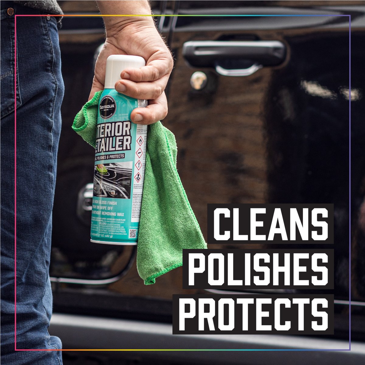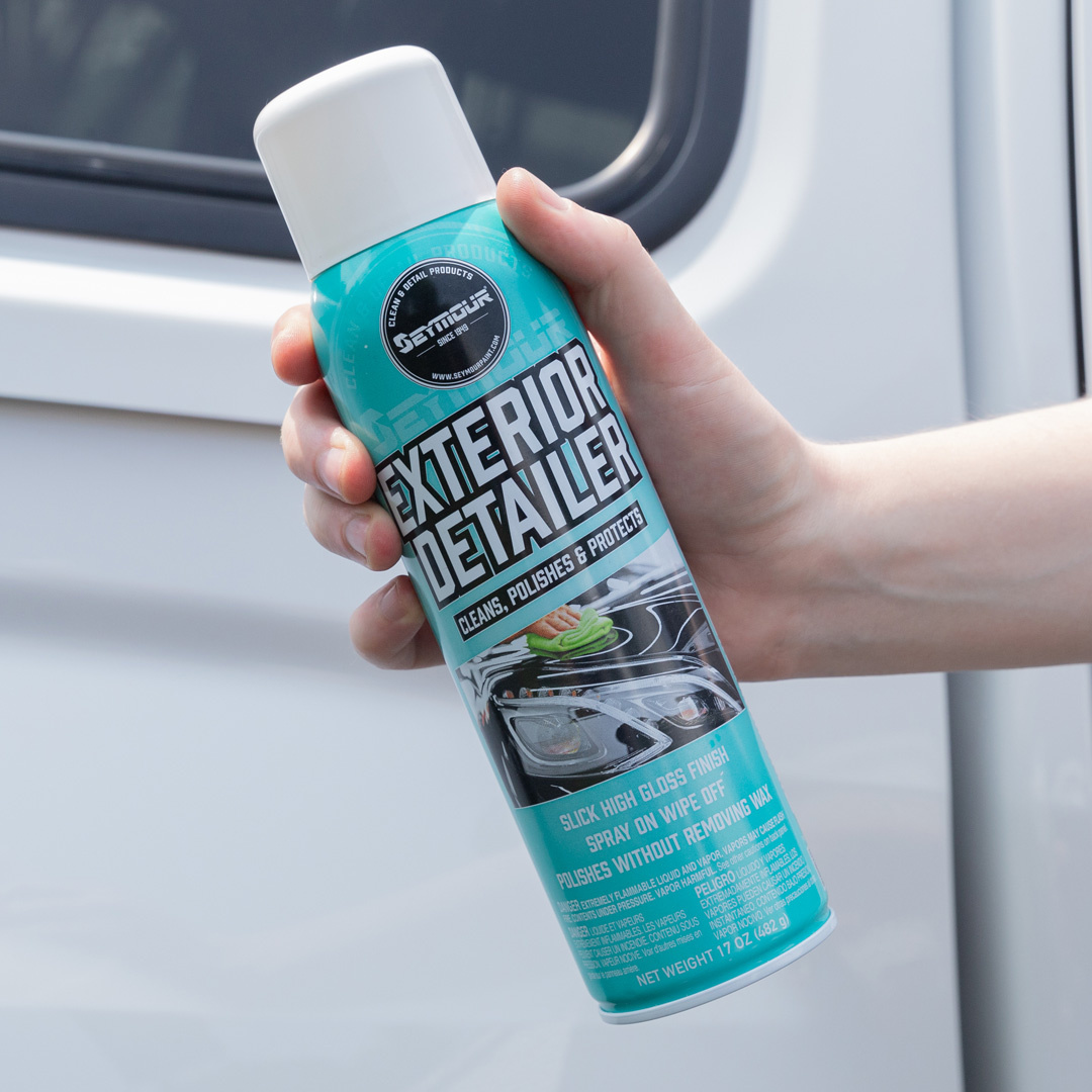 - Enhance your ride with Seymour's quick and easy-to-use exterior detailer spray. Seymour's Exterior Detailer delivers maximum shine and protection in an aerosol spray application. Simply spray on and wipe off for that slick, high-gloss showroom finish.