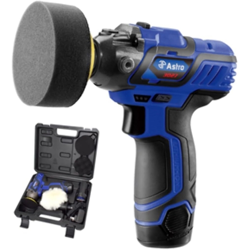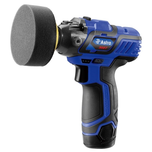 - The Astro Pneumatic 3027 is a compact and powerful 12V cordless mini polisher designed for precision polishing and detailing. Featuring a pistol grip design and a 3" pad size, this tool is perfect for tight areas, headlight restoration, paint correction, and buffing small panels. The polisher comes with two lithium-ion batteries for extended use and minimal downtime, making it ideal for professionals and DIY enthusiasts in auto body repair and detailing.