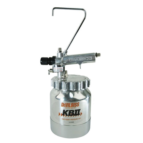 - The DeVilbiss Pressure Cup can also be referred to as a 2qt aluminum pressure feed cup, spray gun pressure tank, 2-quart paint cup, KB-555 pressure vessel, and 120033 DeVilbiss pressure cup.
