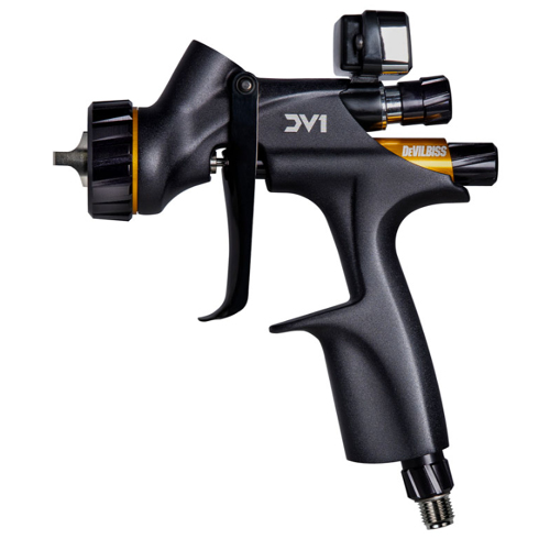 DeVilbiss designed the DV1 Clearcoat Spray Gun to deliver premium clear finishes with advanced air cap engineering, precision fluid control, and digital pressure feedback for professional refinishing environments.