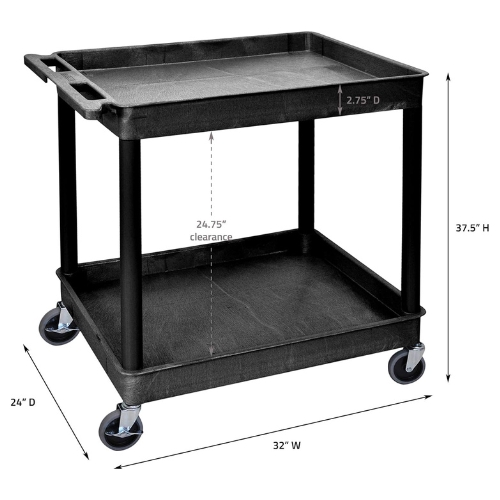 Luxor TC11-B Large Tub Cart, Two Shelves, Four 4 Inch Casters (Two Locking), Assembly Required, 32 Inch Width x 24 Inch Depth x 37.5 Inch Height, Made in the USA
