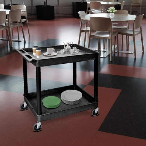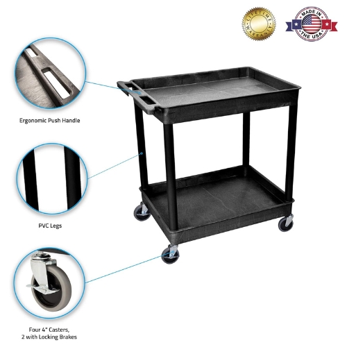 - The Luxor large tub cart can also be referred to as plastic utility cart, two shelf tub cart, rolling service cart, mobile utility cart, and black utility cart.