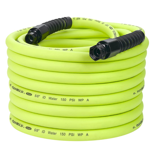 - Flexzilla HFZWP5100 is a 100 foot professional grade water hose with a 5/8 inch inside diameter and reusable aluminum garden hose fittings. Built from a hybrid polymer material, it stays flexible in hot or cold weather, resists kinks under pressure, and lays flat without memory for easier watering and cleanup.