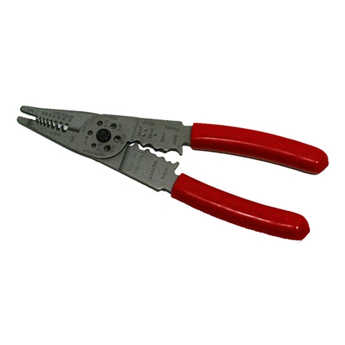 • GearWrench 2162D is a combination electrical wire stripper and crimper with serrated nose jaws, integrated bolt cutters, and plastic dipped red grips. It handles insulated 22-20 to 12-10 AWG and non-insulated terminal ranges and measures 8.25 inch overall. This is a standalone hand tool, not a replacement part.