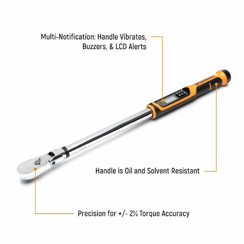 Gearwrench 85079 Flex Head Electronic Torque Wrench with Angle, 1/2" Drive, 25 to 250 ft lb