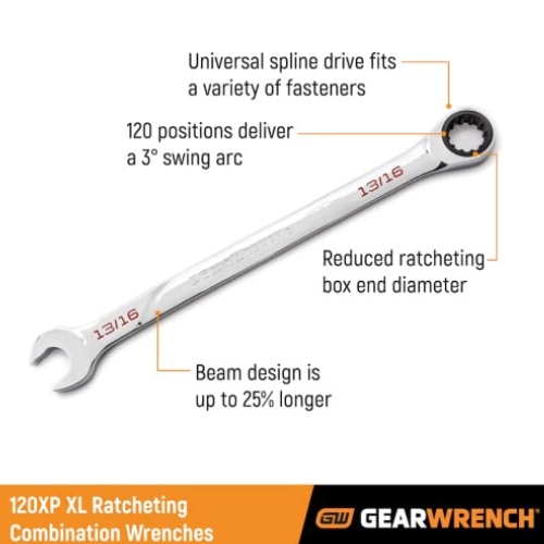 - 13/16 inch 120XP Universal Spline XL Ratcheting Combination Wrench (86442)