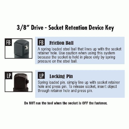 - Spring-loaded steel ball retainer ensures secure socket attachment