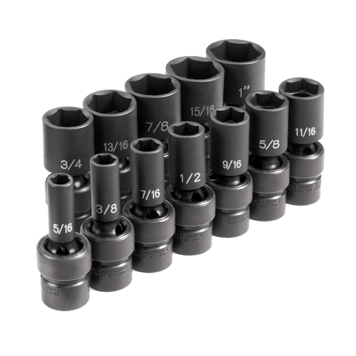 - The Grey Pneumatic 1212USD is a versatile 12-piece socket set designed for professional automotive and industrial applications. Featuring semi-deep, 6-point universal sockets, this set provides enhanced access and flexibility for various fastening tasks. Constructed from high-quality chrome-molybdenum steel, these sockets are engineered for durability and optimal performance with impact tools.