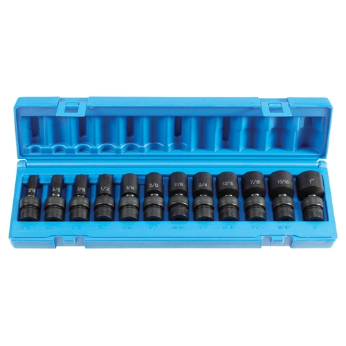 Grey Pneumatic 1212USD 3/8" Drive 12-Piece Universal Semi-Deep Impact Socket Set, SAE, 6-Point
