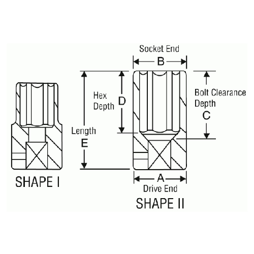 - Type High Torque, 6-Point, Deep Length, SAE Fractional, Hex, Shape I
