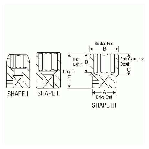 • Type: High Torque, 6-Point, Standard Length, SAE Fractional, Hex, Shape III