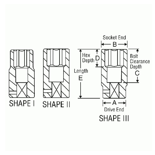 • Type: High Torque, 6-Point, Extra Deep Length, SAE Fractional, Hex, Shape III
