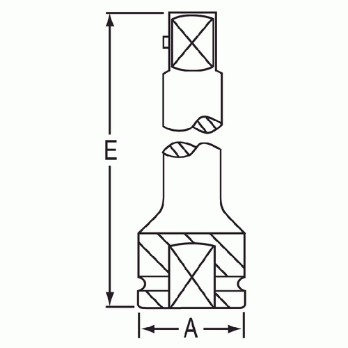 - 1/2" drive female to 3/8" drive male configuration