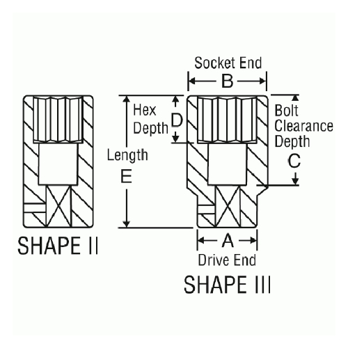 - Type: High Torque, 8-Point, Deep Length, SAE Fractional, Shape III