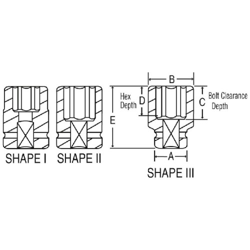 - Type: High Torque, 6-Point, Standard Length, SAE Fractional, Hex