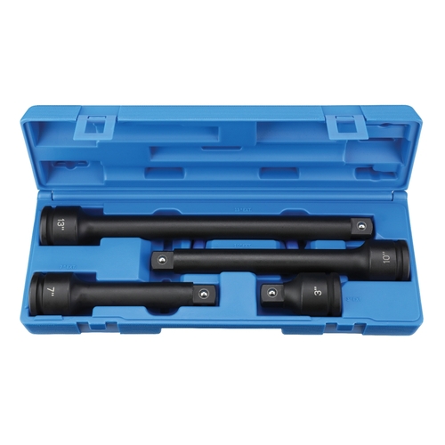 - The Grey Pneumatic 3304E Impact Extension Set is designed for professionals requiring extended reach and flexibility in high-torque applications. This 4-piece set includes extensions of varying lengths, allowing users to access fasteners in deep or hard-to-reach areas. Constructed from high-strength alloy steel and featuring a friction ball retention system, these extensions ensure secure socket engagement during heavy-duty operations.