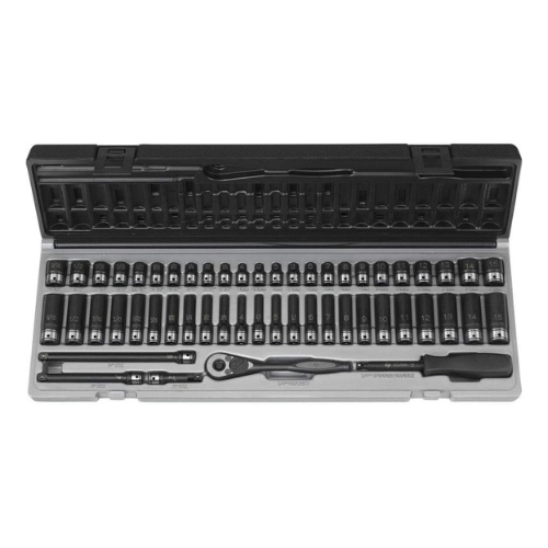 - 53-piece complete set with both fractional and metric sockets in standard and deep lengths for comprehensive coverage.
