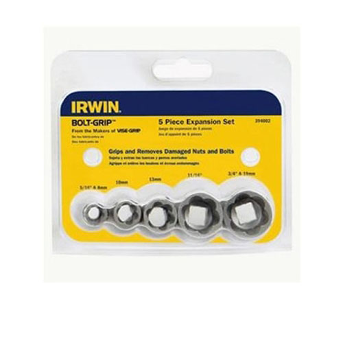 - Irwin 394002 Bolt-Grip Bolt Extractor Expansion Set is a 5 piece bolt extractor set designed to remove rounded-off, rusted-tight, or painted-over nuts and bolts. Reverse spiral flutes bite into the fastener head as you turn, and the 3/8 inch square drive works with common hand and impact tools.